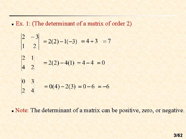 Similarly if you multiply all the elements or a row or column by -1 the determinant will be negative. The determinant only exists for square matrices 22 33. The determinant of a 11 matrix is that single value in the determinant.